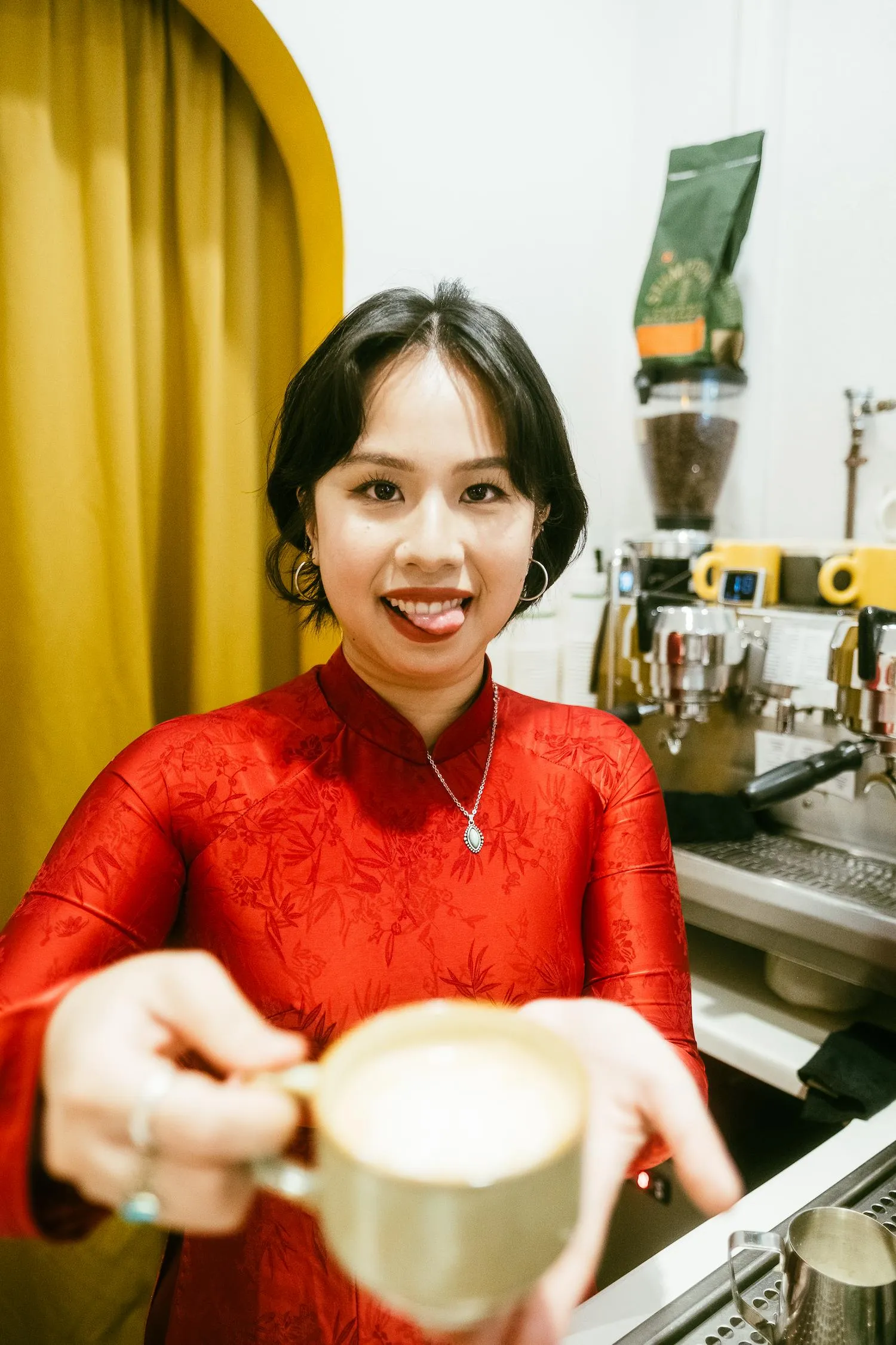 “I was so bad the first two weeks. I kept spilling things and breaking shit. It was insane the amount of coffee I made that tasted bad. At first I really thought, ‘Maybe some people are born to do different things. I am not born to do this.’ Luckily, everyone was very patient with me. I used to open syrup bottles by biting the wrapping off, and my boss would be like, ‘Throw that shit away. That’s going off your paycheck because you almost contaminated a whole entire coffee shop.’ Working there taught me discipline from the ground up.”